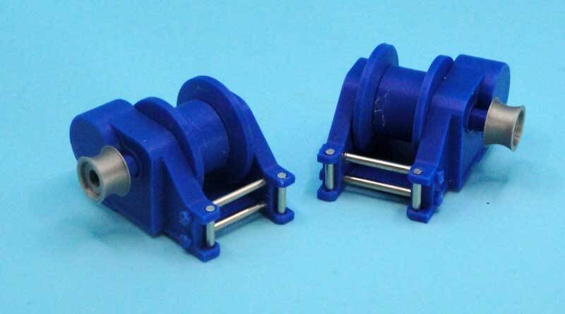 Verder heeft deze lier een enkele roller aan de achterzijde en aan de voorzijde uitgevoerd met dubbele horizontale rollen plus 2 verticale zijrollers links en rechts. De drum diameter is 24 mm bij een breedte van 15 mm.